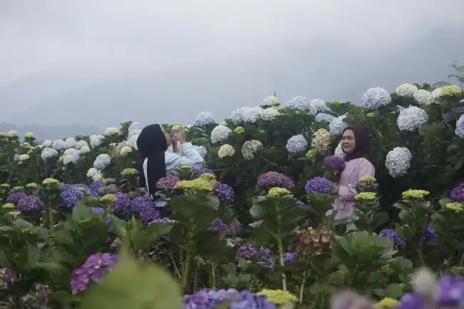 Kebun Bunga Hortensia di Batu Jadi Sensasi Medsos, Ribuan Pengunjung Berburu Foto Estetik